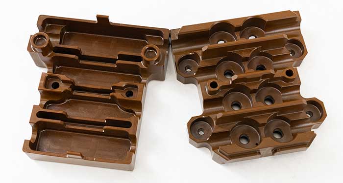 - आकृतियों और पुर्जों का उत्पादन: एक वास्तविक पॉलीइमाइड पॉलिमर होने के नाते, वेस्पेल पीआई में पिघलने की अवस्था नहीं होती है और इसे पिघलाकर या इंजेक्शन मोल्डिंग द्वारा नहीं ढाला जा सकता है। आकृतियाँ और पुर्जे उच्च दबाव और तापमान पर पीआई पाउडर को संपीड़न या आइसोस्टैटिक मोल्डिंग द्वारा ढालकर बनाए जाते हैं, जो पाउडर धातु के पुर्जों की सिंटरिंग के समान है। इस तकनीक में विभिन्न बदलावों से अलग-अलग आकार बनते हैं: वेस्पेल पीआई की छड़ें आइसोस्टैटिक मोल्डिंग द्वारा बनाई जाती हैं, प्लेटें और डिस्क संपीड़न मोल्डिंग द्वारा बनाई जाती हैं, और कस्टम पुर्जे सीधे ढाले और सिंटरिंग द्वारा तैयार किए जाते हैं।